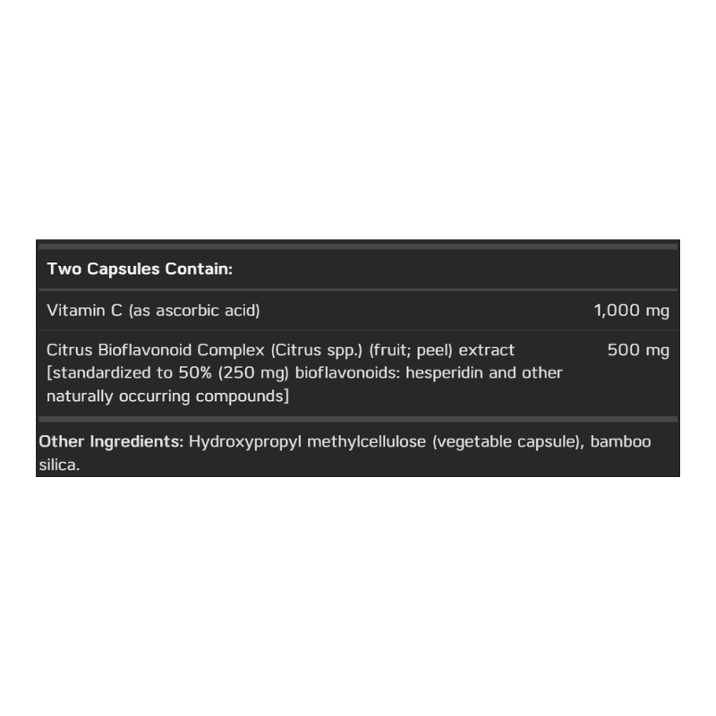 C-Bioflav 1000™ is a synergistic blend of vitamin C and a potent, standardized complex (50%) of citrus bioflavonoids for optimal efficacy.* It has been shown that the combination of vitamin C and bioflavonoids provides powerful antioxidant support, supports optimal immune function and supports healthy collagen production.*
