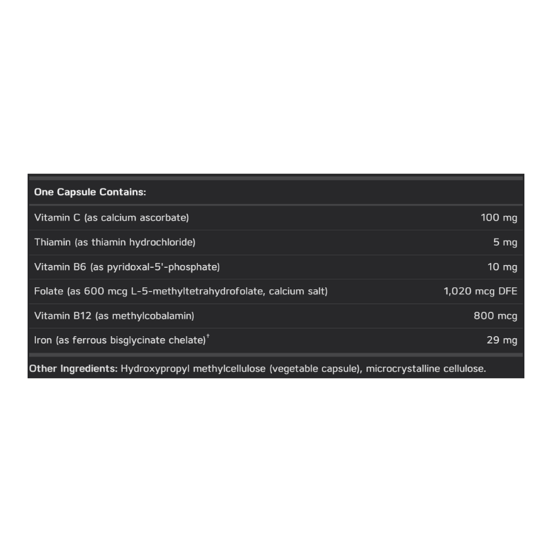 HemePlex Fe® is an advanced iron formula supplying key nutrients to assist the body’s production of hemoglobin and healthy red blood cells.* It features Ferrochel®, Albion® Minerals' patented iron bisglycinate chelate. Ferrochel® is a well-tolerated, non-constipating iron that is much more highly absorbable than other forms of iron commonly used in dietary supplements.* The 5-MTHF in this formula is the most biologically active form of folate, allowing rapid uptake into the bloodstream.* The 5-MTHF in this formula is also known as the "L" form of 5-MTHF since it is the reduced form of folate.