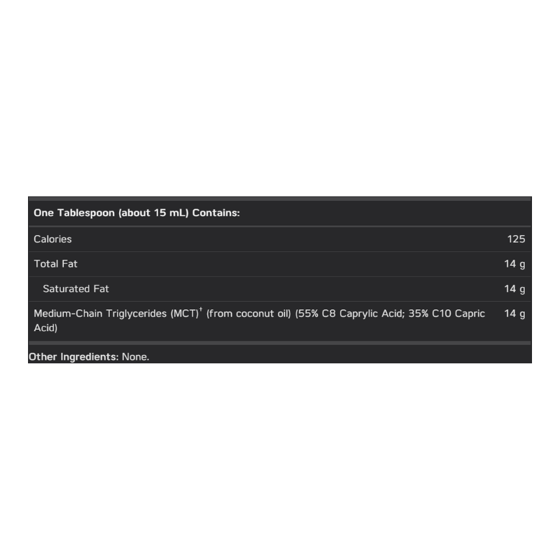 MCT Oil USP™ is a high quality blend of medium-chain triglycerides (MCTs). MCTs are special fatty acids which are metabolized more fully for energy in the body. Normal fats and oils contain long-chain fatty acids (LCTs). When compared to these fatty acids, MCTs are much shorter in length thus resembling carbohydrates more than fat. As a result, they are more quickly absorbed by the body and metabolized as fuel.* Because of this quick metabolism, the calories in MCTs are very efficiently converted into fuel for immediate use in the mitochondria, instead of being stored as fat.*